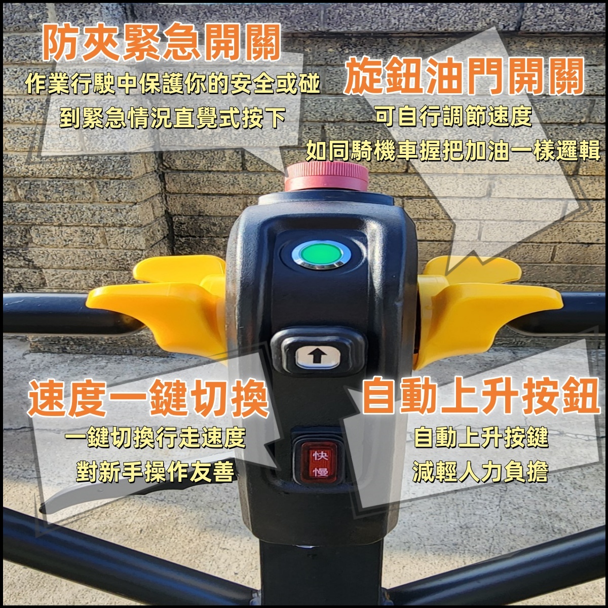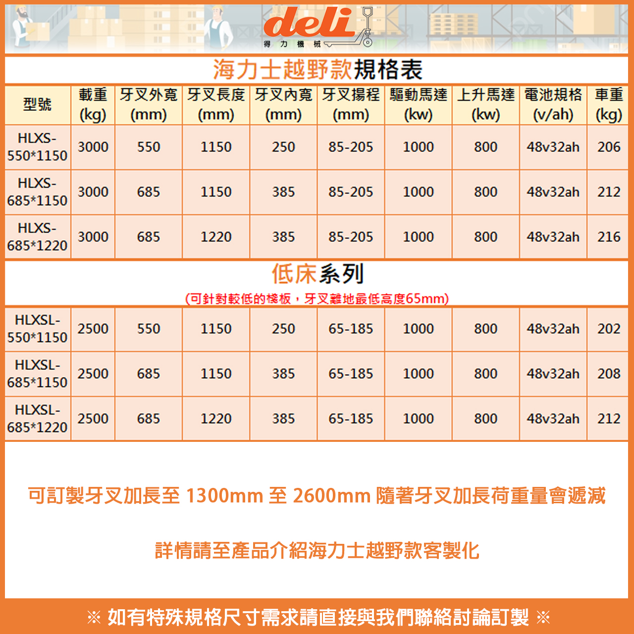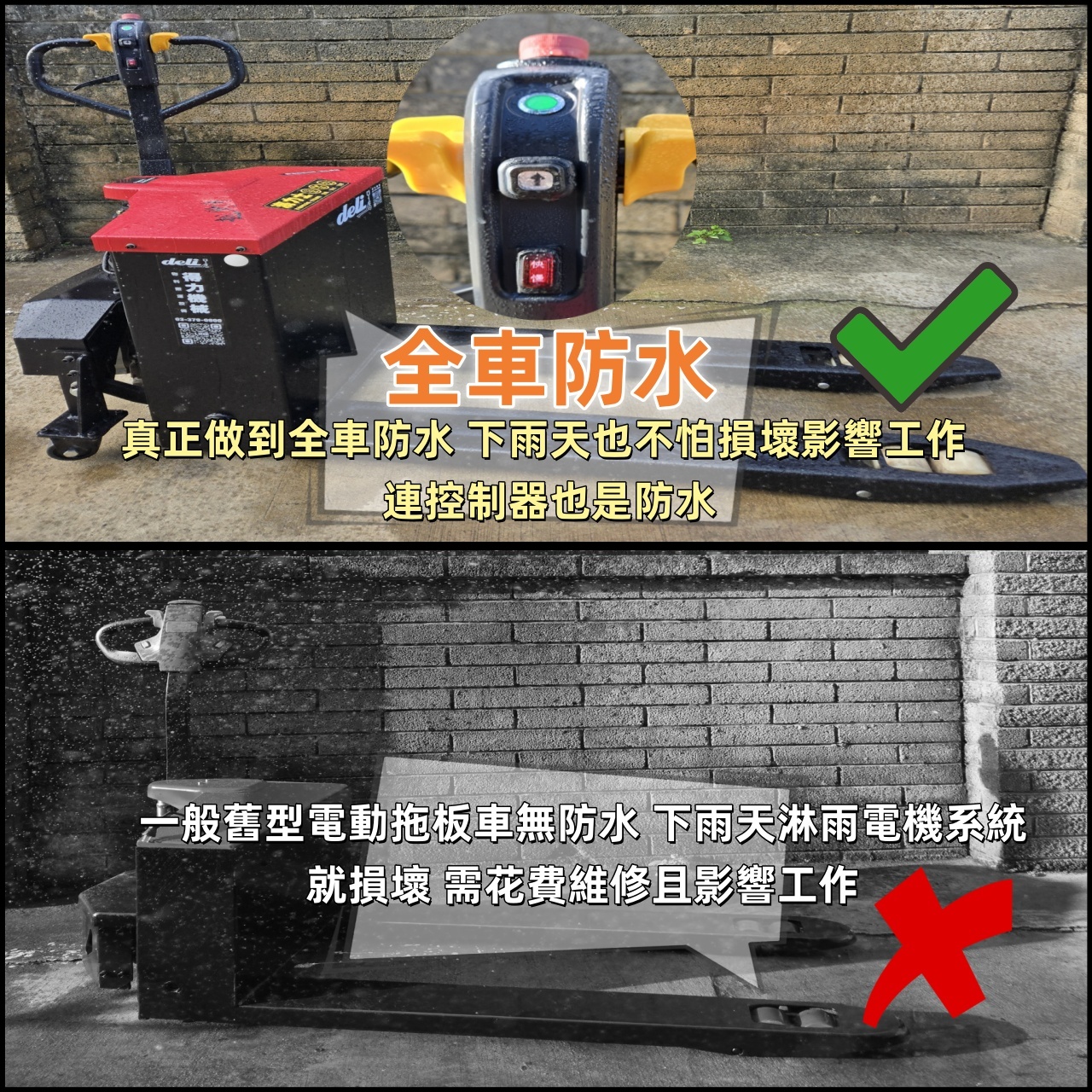 承載重量3頓 重型耐磨越野實芯輪胎全車防水 48V32AH 永磁無刷馬達.配有1000W大扭力驅動.爬坡強.載重更有力。 專利設計全密封齒輪傳動.不易浸水.又防塵.內部傳動齒輪壽命更長.穩定可靠。 驅動電機1000w 起升電機800w 滿電滿載連續使用4-4.5小時
